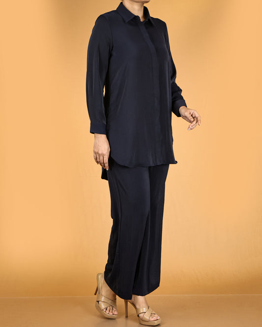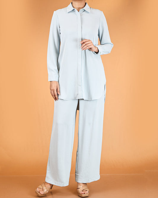 Elegant Long Shirt & Wide-Leg Pant Co-ord Set