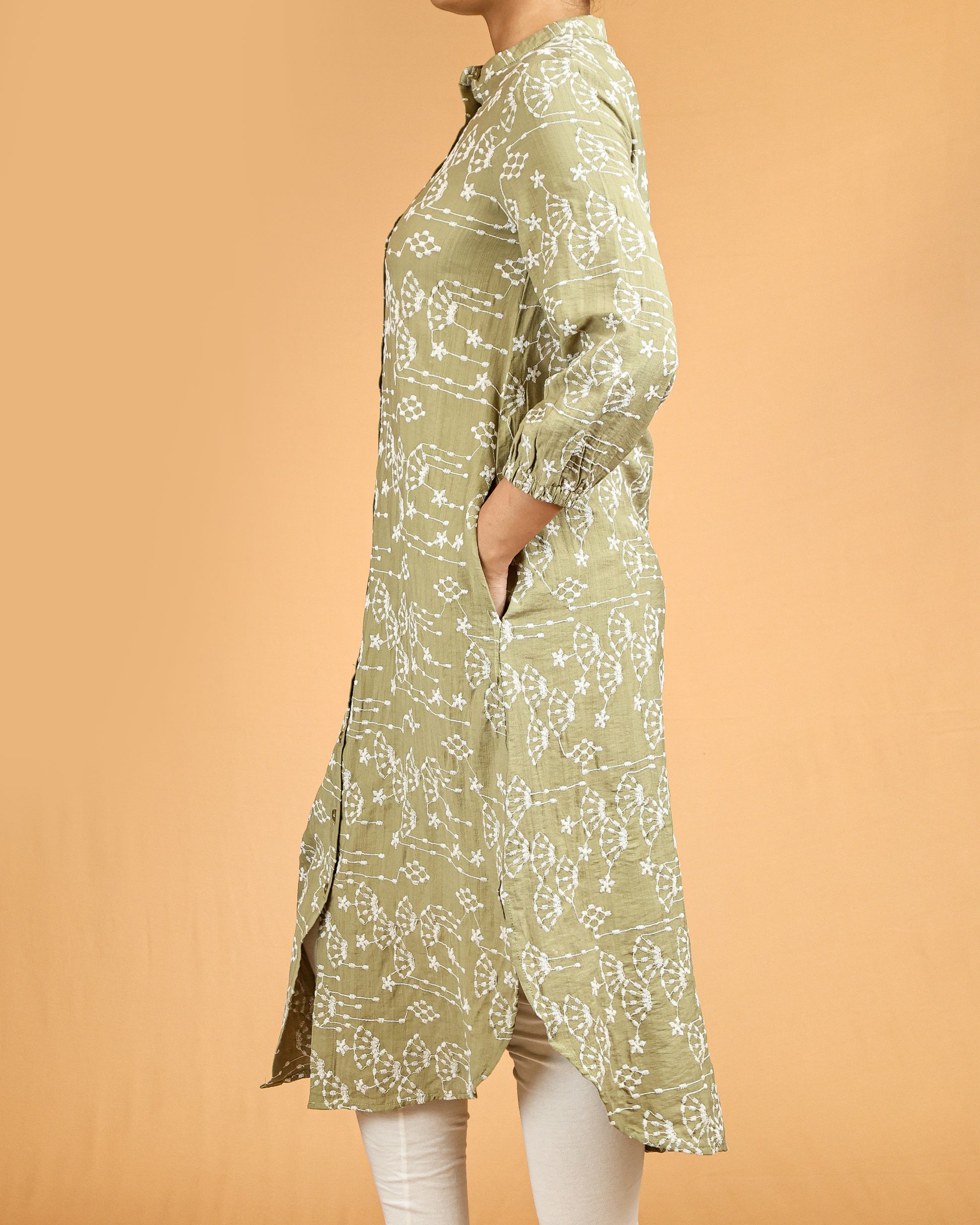 Elevate your everyday look with this A-Line Green long top with pockets. Designed with flowy comfort and modern minimalism in mind, this versatile outfit is perfect for casual wear, lounging, or styling up with accessories for outings. A wardrobe essential that blends comfort with effortless elegance.