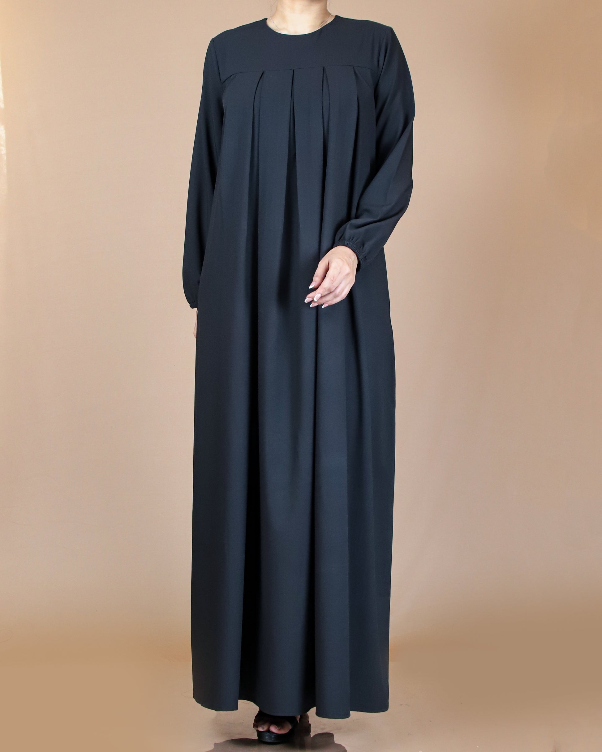 Make a bold yet elegant statement with the Elegant Black Pleated Maxi Dress. Designed for comfort and sophistication, this timeless black dress features structured pleats on the bodice, adding a touch of refinement to the flowy silhouette. The long sleeves with buttoned cuffs provide a polished look, while the soft polycotton fabric ensures all-day comfort. The floor-length design enhances the graceful drape, making it an ideal choice for both formal and semi-casual occasions.