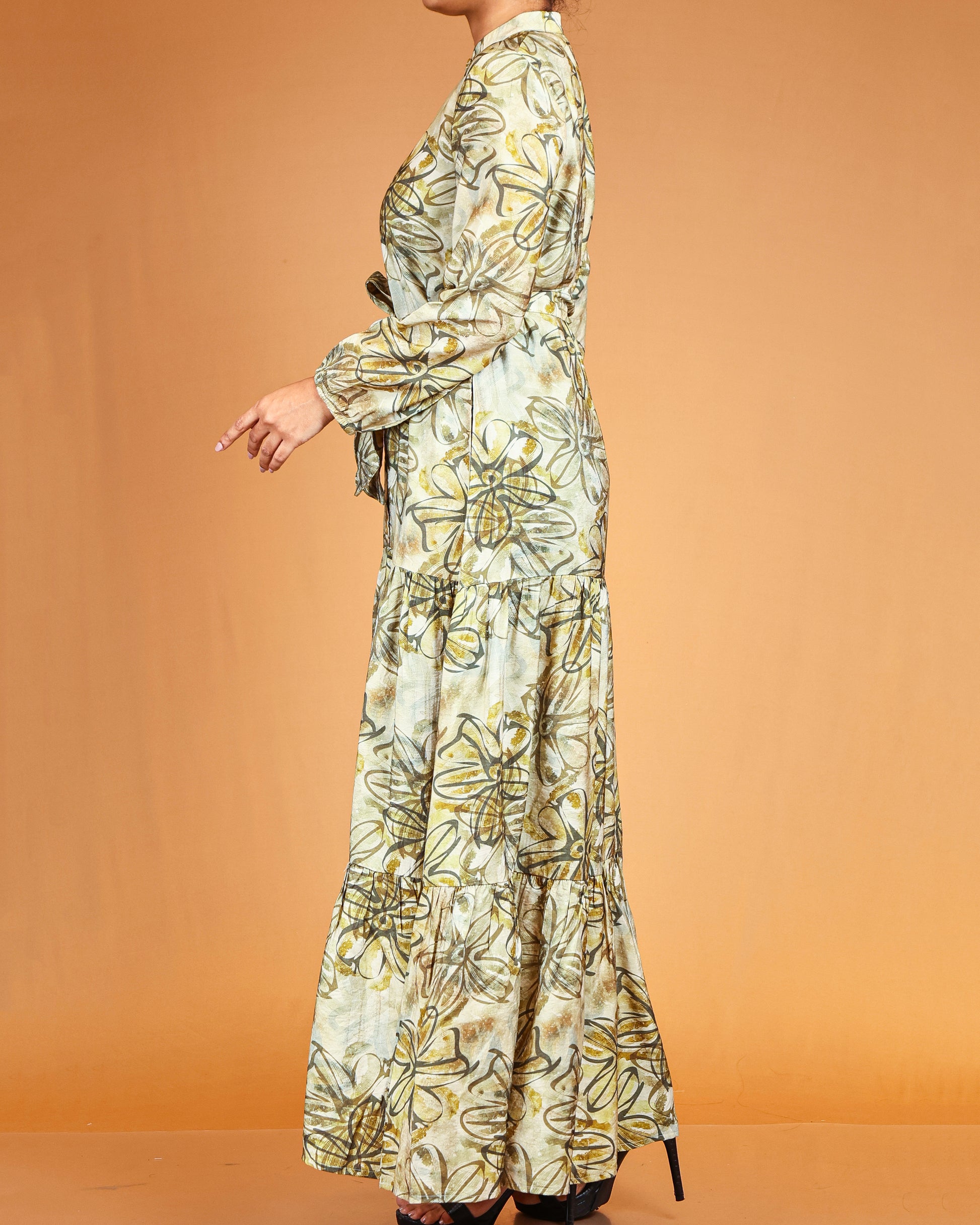 Sage Gold Bloom Maxi with Waist Tie Belt