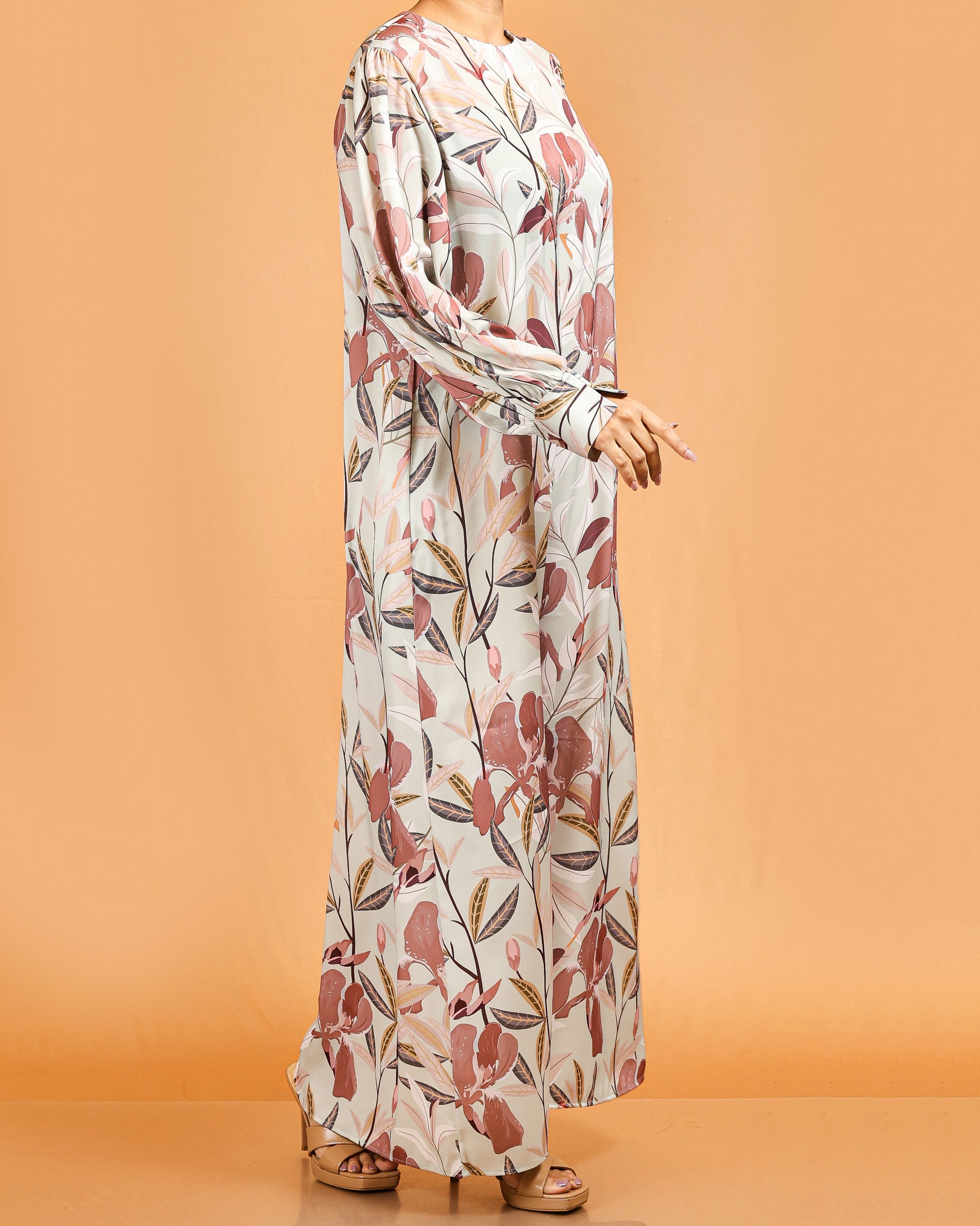 A dreamy rose-toned floral abaya with a gentle, flowy silhouette that brings effortless elegance to your everyday style. The lightweight fabric drapes beautifully, giving a soft and refined look from top to bottom.